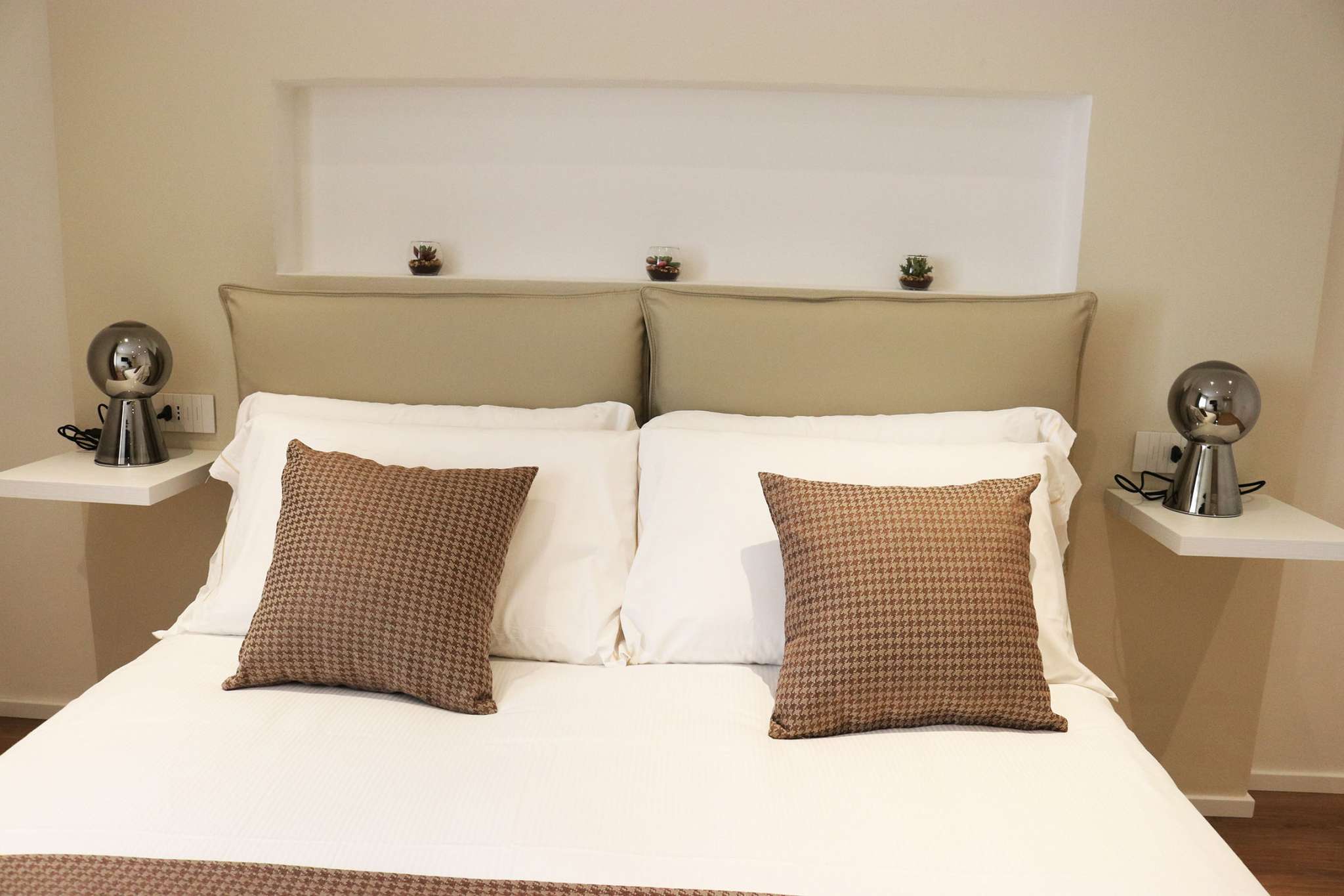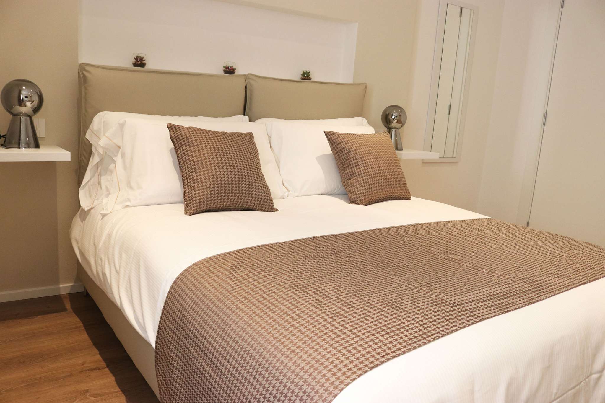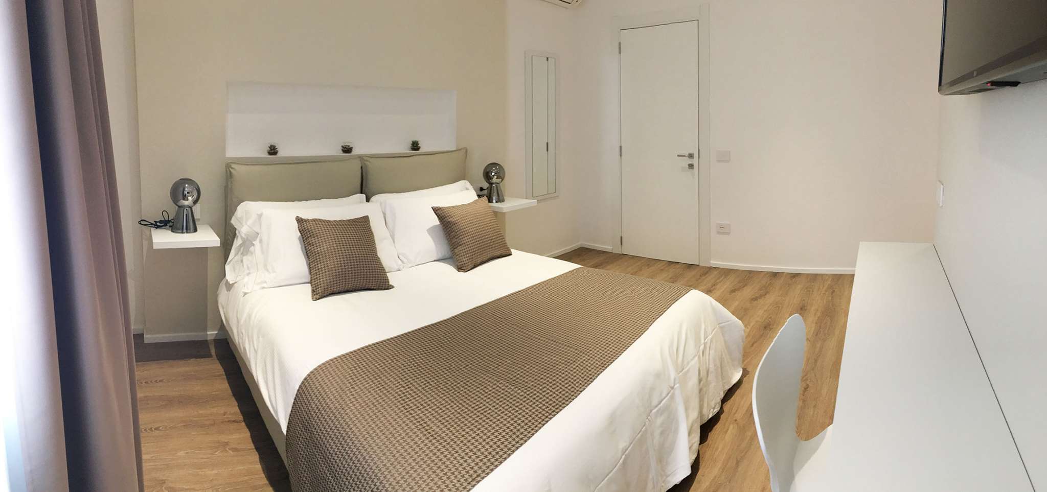 Moderne e funzionali sono dotate tutte di bagno interno con doccia wc e bidet, aria condizionata fredda e calda, Tv Full HD, set da bagno, phon, linea internet wifi illimitata, bottiglia d’acqua e brochure informative. Le nuove camere sono state innaugurate nel 2019 ed hanno linee pulite e lineari in pieno design italiano. Atmosfera elegante e chic per chi ama le geometrie pure senza rinuciare al calore di un B&B.
